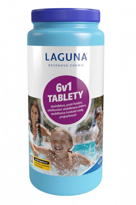 LAGUNA TABLETY 6 v 1 je moderní víceúčelový přípravek pro celosezónní průběžnou údržbu vody ve všech typech bazénů. Likviduje bakterie a řasy, zabraňuje jejich růstu, umožňuje vyvločkování nečistot, stabilizuje aktivní chlor, tvrdost vody, projasňuje (zlepšuje efektivitu filtrace).