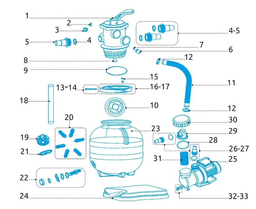 Hadici propojující čerpadlo a filtrační nádobu. Délka hadice je 50,5 cm.
