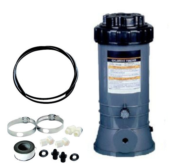 Dávkovač chemie do bazénu určený pro dávkování chloru pomalurozpustnými chlorovými, nebo bromovými tabletami. Instalace do bazénového potrubí pomocí hadiček. Maximální množství tablet 4kg.