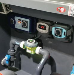 Zařízení hlídá průtok vody a množství soli ve vodě. V případě, že je vše v pořádku, cela svítí zeleně, pokud nastal nějaký problém, cela svítí červeně.