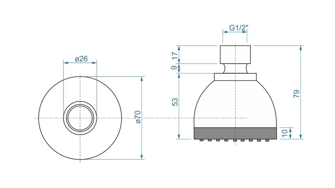 - průměr 82 mm- připojení otočným kloubem (vnitřní závit 1/2")- materiál: plast